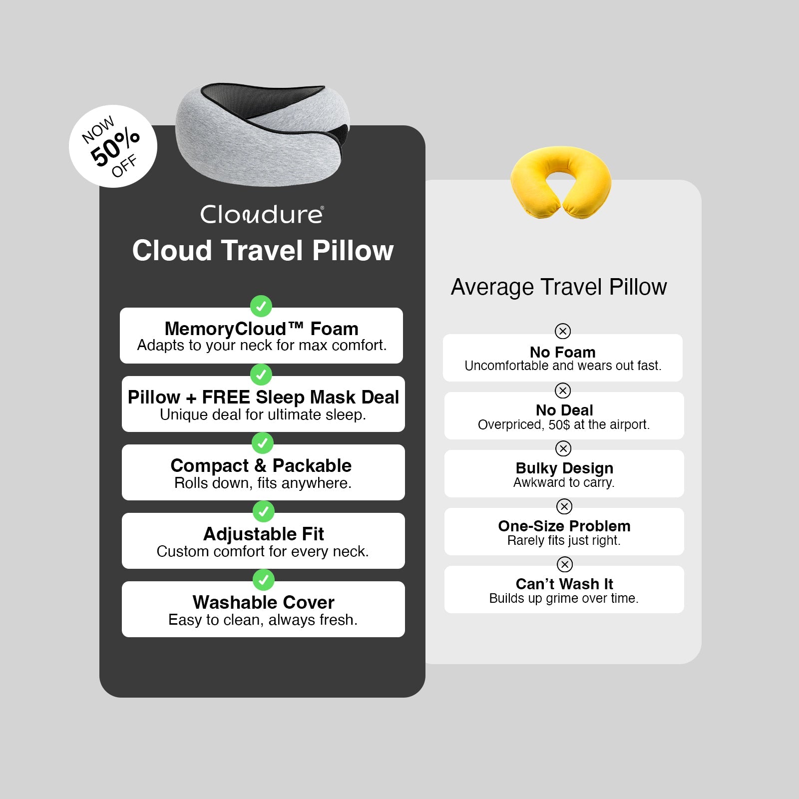 Unlike others, our pillow offers 360° ergonomic support, adaptive memory foam, and an easy-to-clean cover, all at an unbeatable value.